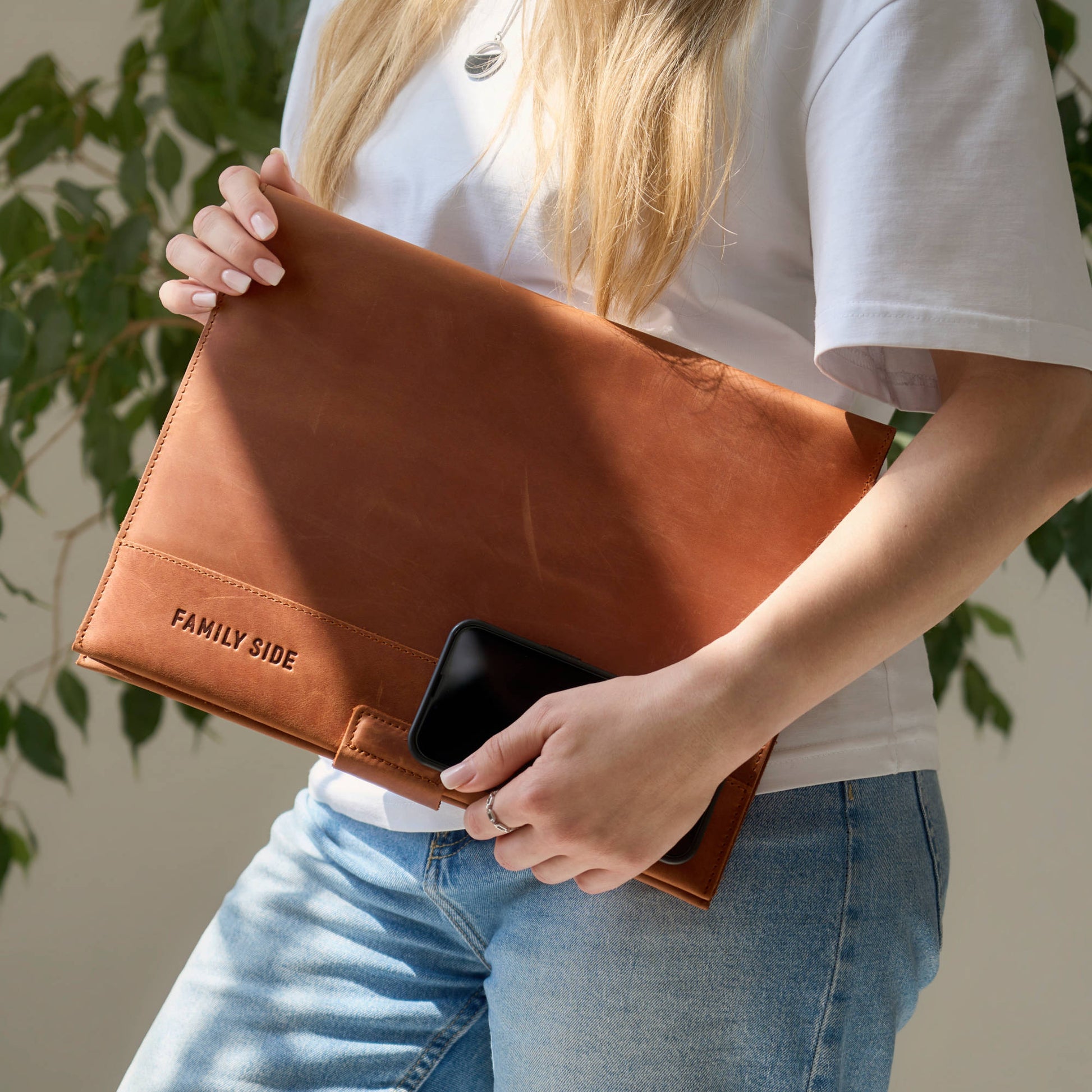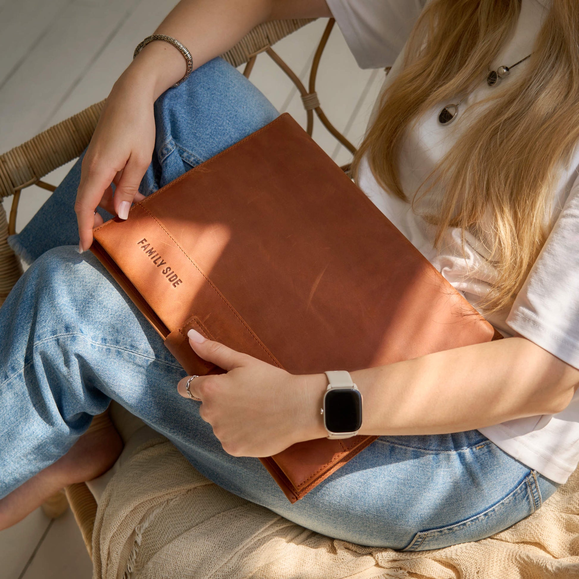 The leather document folder for families YOUNG FAMILY is an elegant and practical organizer designed to safely store passports, certificates, contracts, and other important documents.