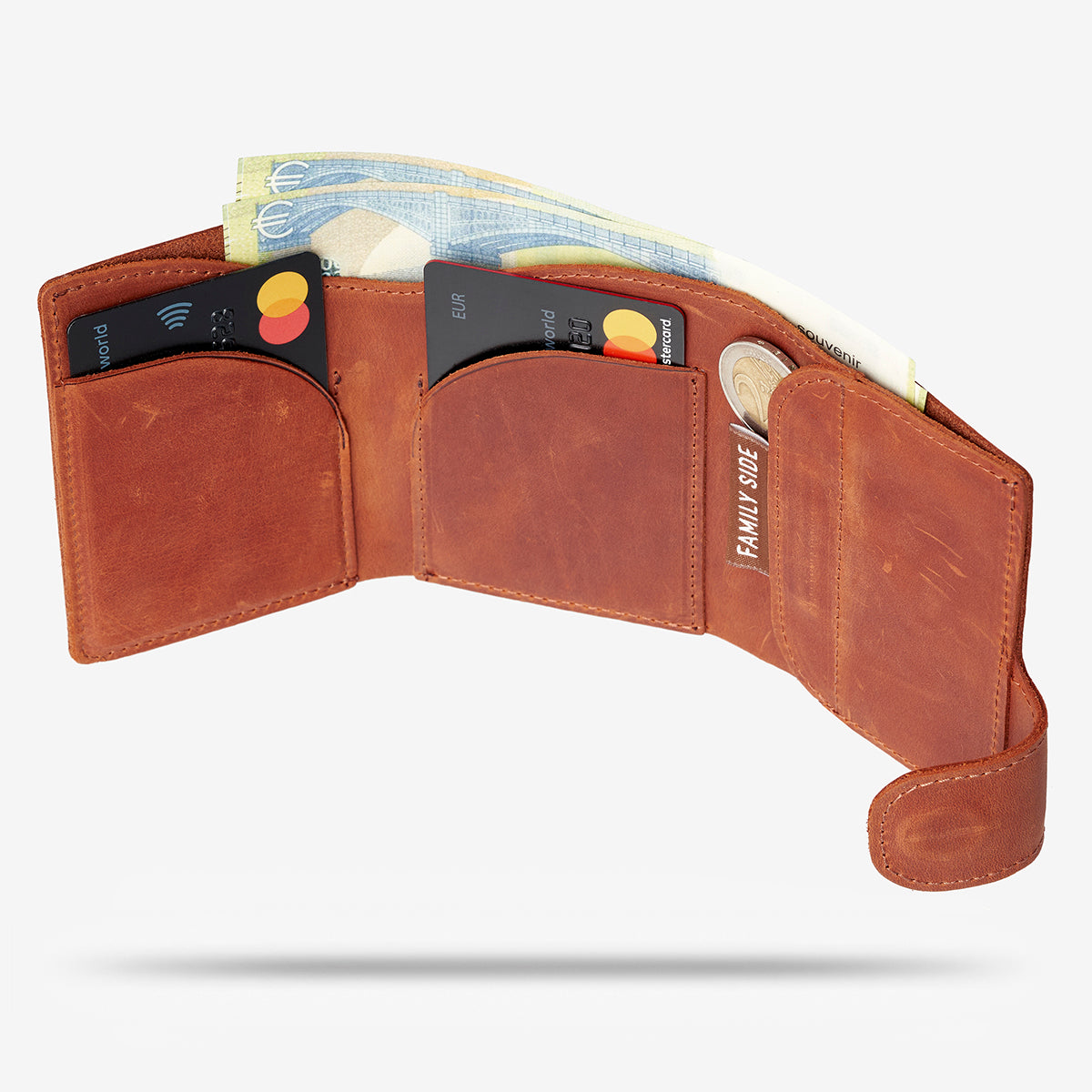 🪽 It has a roomy section for banknotes, pockets for cards and a section for coins, and fits comfortably in the palm of your hand.